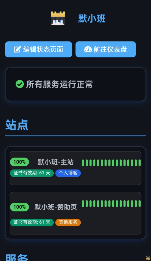 然后最近用AI写了个Uptime Kuma的美化代码。整体的样式是bootstrap5的样式。(因为我觉得这个UI库确实比较好看),那就来水篇文章顺便发个代码吧(bushi)