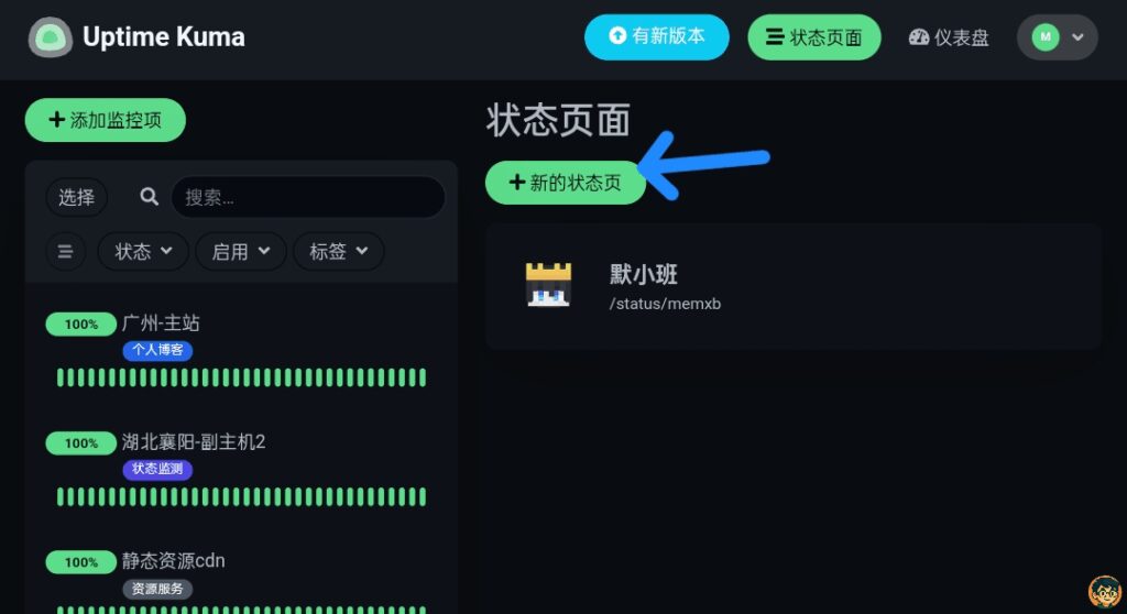 如果你还没有状态页面,那么请去仪表盘处创建一个监测页面,然后点击 该状态页面-编辑状态页面-添加监控项目。